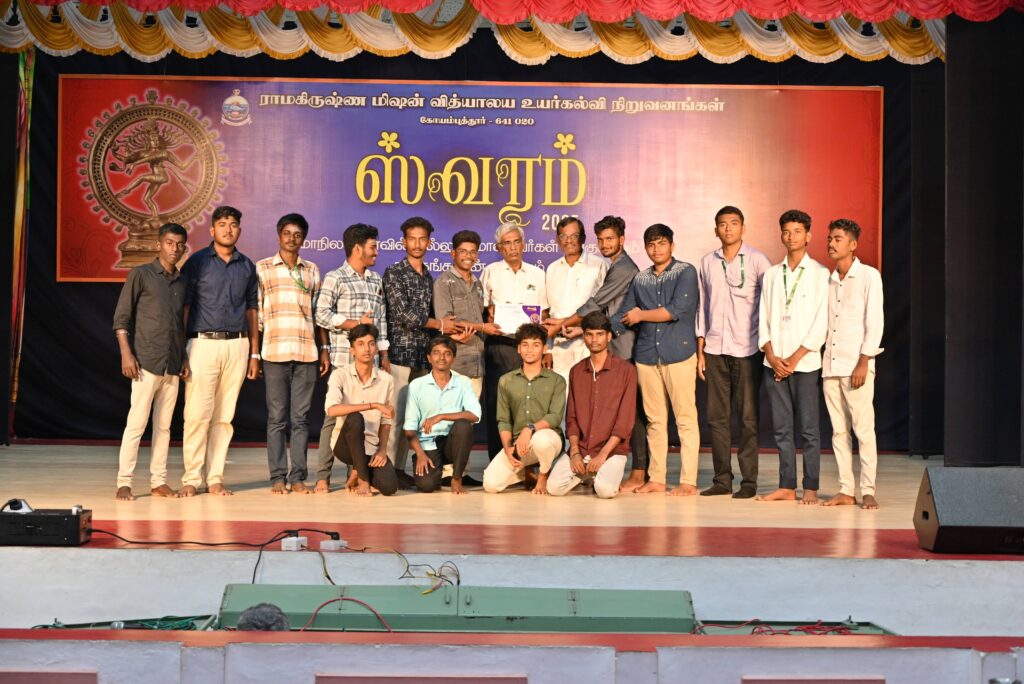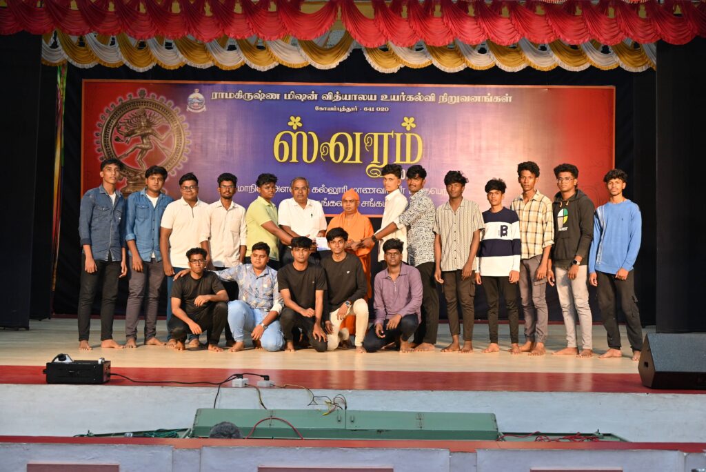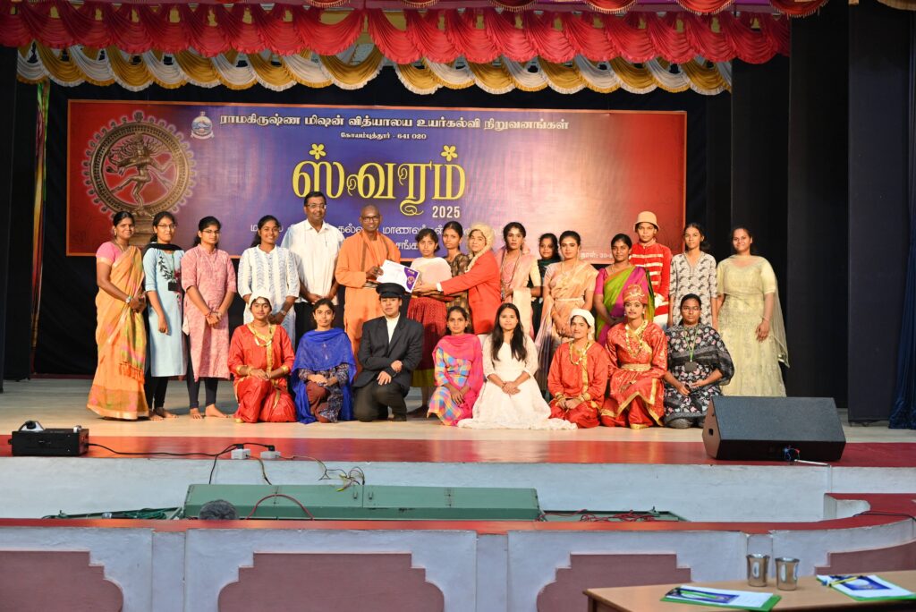 Ramakrishna Mission Vidyalaya organised SWARAM State Level Intercollegiate Drama Competition on the topic History of Indian Freedom Struggle on 30.08.2025. 156 students and 14 teachers from 9 colleges from various parts of Tamilnadu presented their drama on Freedom Fighters.