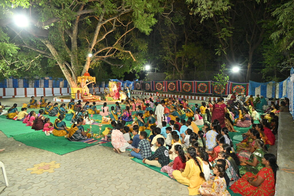 அன்று மாலை நடைபெற்ற அன்னை சாரதாதேவியார் திருவிளக்கு பூஜையில் நமது குடியிருப்பில் உள்ள அக்காக்கள் மற்றும் பெண் குழந்தைகள் கலந்து கொண்டு 60 குத்துவிளக்குகள் வைத்து பூஜை செய்தனர்.